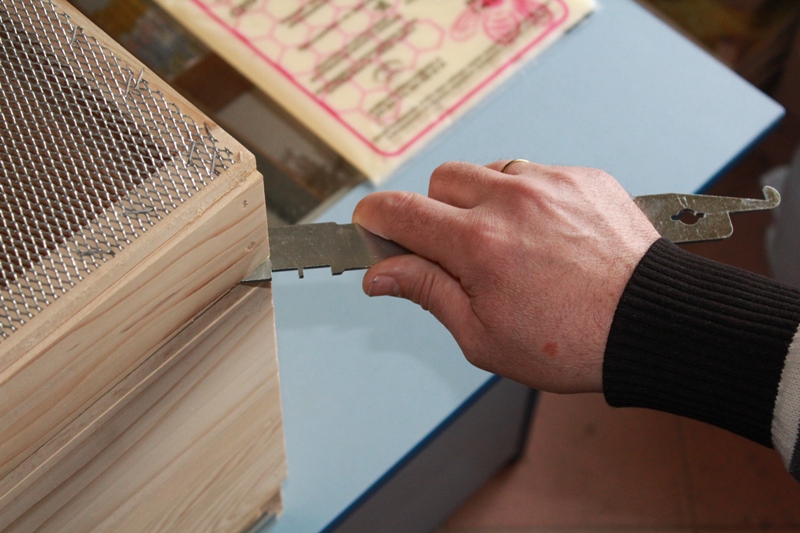 Pčelarski nož američki Cr (inox) služi za odvajanje poklopne daske od tela košnice i jednog nastavka od drugog, a zatim za razdvajanje ramova, skidanje voska i propolisa sa pojedinih delova košnice, čišćenje zidova košnice i podnjače,itd. Nož sa ovakvim dizajnom naziva se još i američki nož. Na jednoj strani je izveden prav i oštar, a na drugoj povijen, gotovo pod pravim uglom. Materijal od kojeg je izrađen nož je prohrom (inox). Pčelarski nož na površini ima još i otvor, u vidu rupe, koja prvenstveno služi za vadjenje eksera, ali može poslužiti i za lakše odlaganje noža na neki nosač.