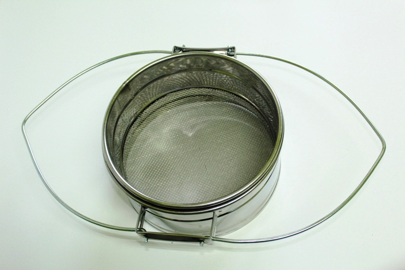 Cedilo za med dvodelno sa ručkamaa sa strane, je prohromsko cedilo sa prohrom mrežom promera dovoljnim da zadrži sve veće nečistoće u medu.